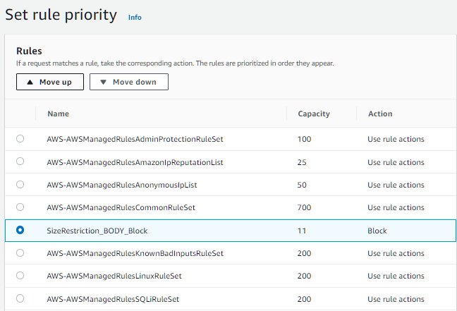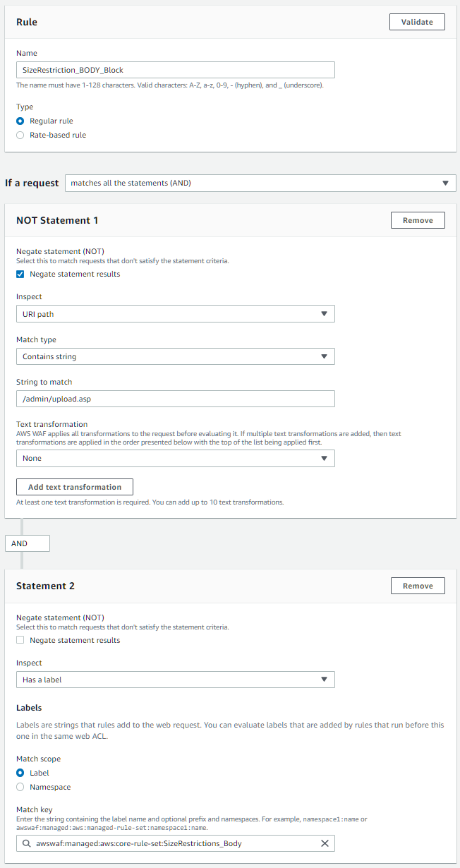 SizeRestrictions_BODY Override to Count 2) Label 정책을 생성 합니다. (Add rules -> my own rules and rule groups 클릭)