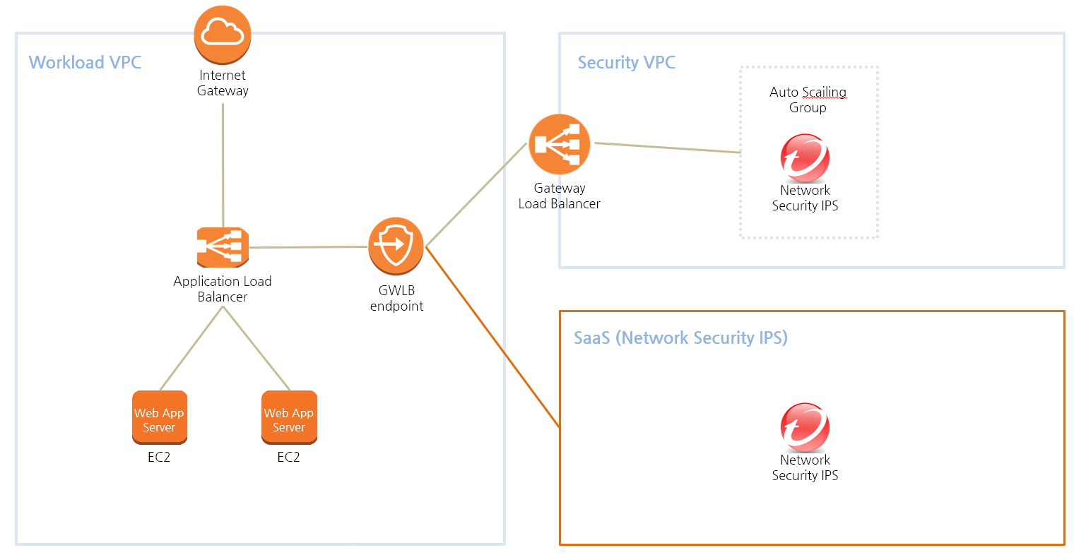 별도의 Security VPC 내에 네트워크 보안 도구(IPS 등)를 구성하고 라우팅 경로의 중간에 Security VPC를 지정해줌으로써 Inbound, Outbound, 그리고 EC2간 통신을 검사할 수 있도록 지원하는 LoadBalancer 이다.