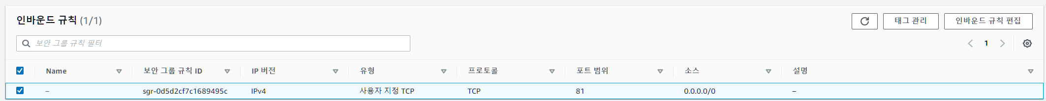 리스너는 81, 82 Port이며 모두 타겟그룹의 80포트를 바라보고 있다.