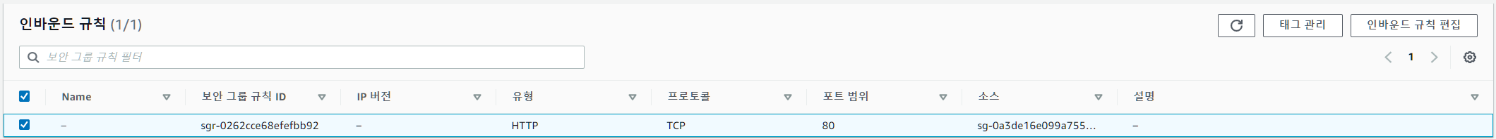 테스트 페이지 정상 동작 결론, 보안그룹은 지정된 리소스에서 들어오는 통신을 기준으로 통신이 허용되는 동작 원리를 가지고 있다.