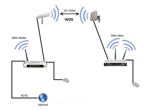인터넷이 연결되어 있는 AP와 인터넷이 연결되어 있지 않은 AP가 WDS로 연결되면 인터넷에 연결되어 있는 AP로부터 무선 신호를 받아 인터넷이 연결되지 않은 AP가 다시 신호를 뿌려주는 역할을 한다.